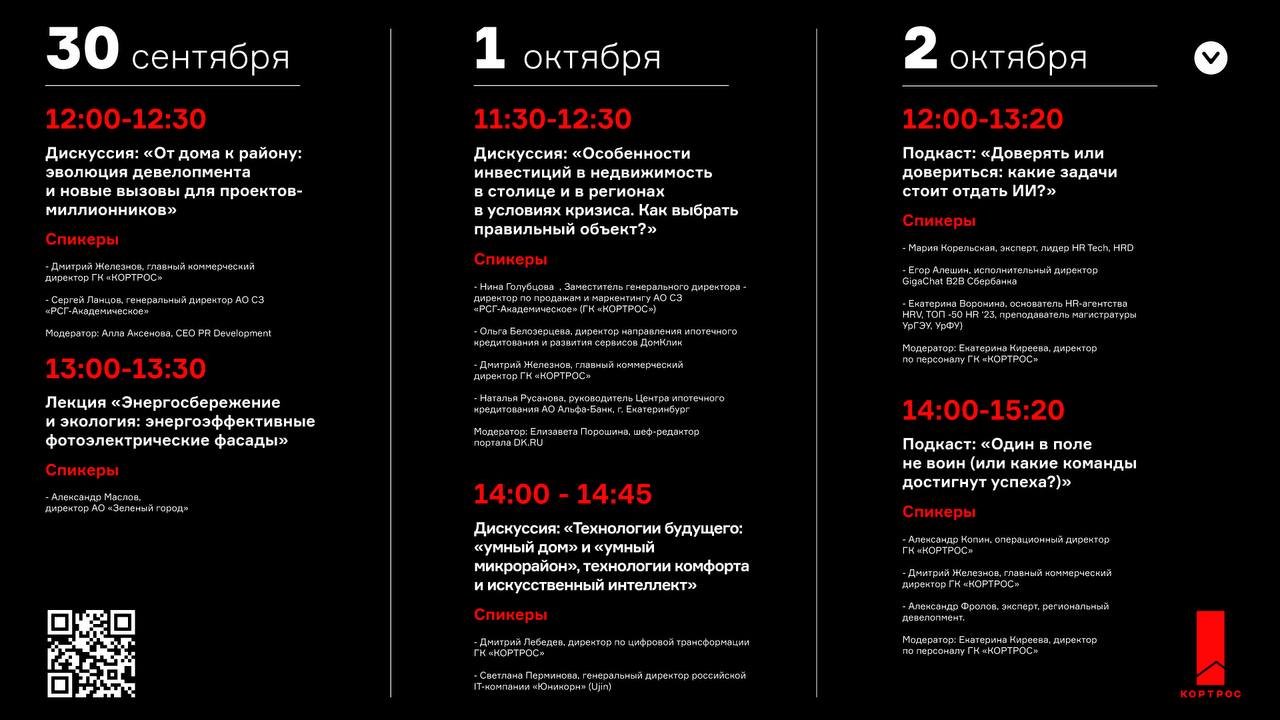 Стихии жизни, “цифра” и человек: “КОРТРОС” представляет свои проекты и будущее девелопмента на международном строительном форуме 100+ TechnoBuild в Екатеринбурге с 30 сентября по 3 октября.