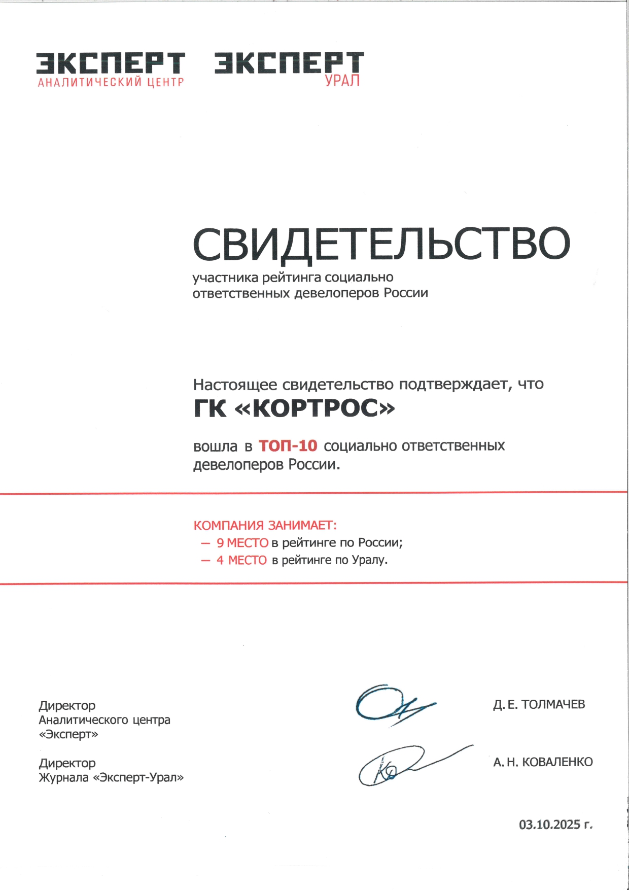 ГК «КОРТРОС» с крупнейшим проектом «Академический» в Екатеринбурге – в лидерах рейтинга социально ответственных девелоперов России. Исследование провел АЦ «Эксперт».