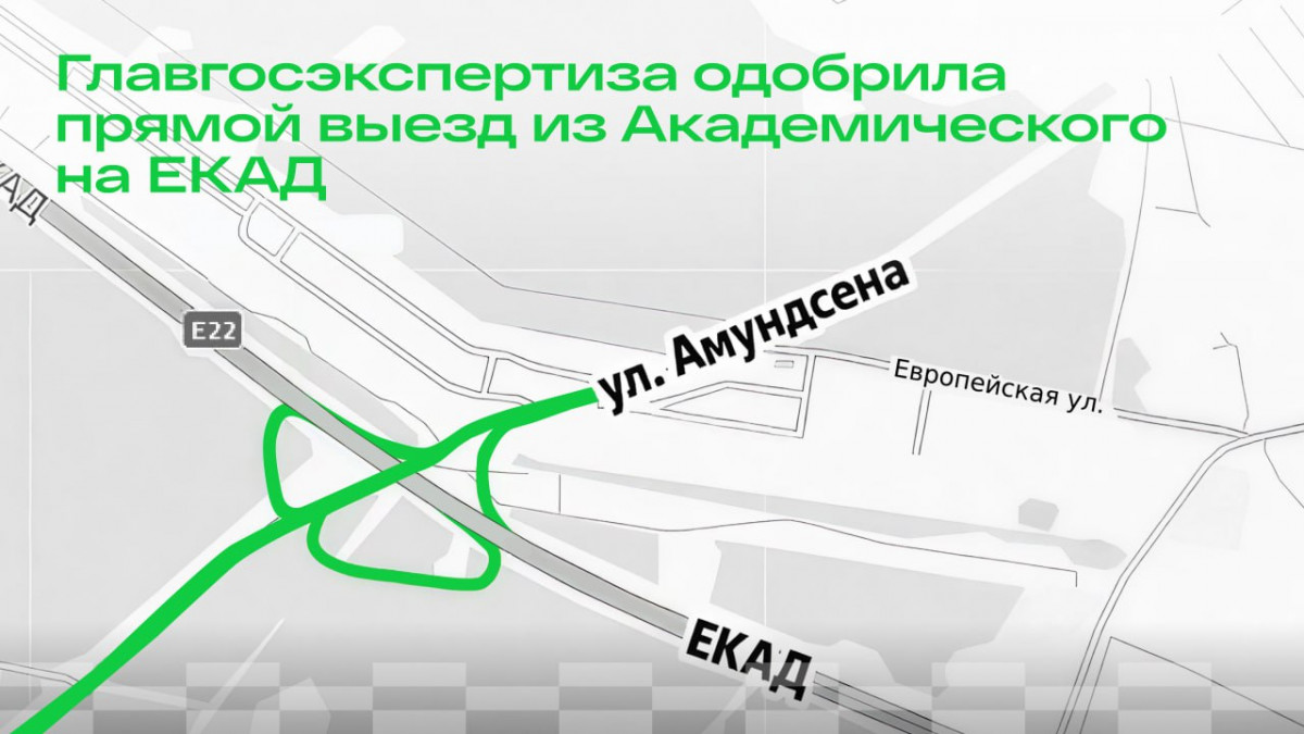 Проект строительства транспортной развязки «Амундсена — ЕКАД» в Академическом районе Екатеринбурга получил положительное заключение Главгосэкспертизы России.